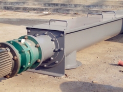 螺旋输送机是用旋转的螺旋叶片将物料推移而进行螺旋输送机输送,使物料不与螺旋输送机叶片一起旋转的力是物料自身重量和螺旋输送机机壳对物料的摩擦阻力。螺旋输送机旋转轴上焊的螺旋叶片,叶片的面型根据输送物料的不同有实体面型、带式面型、叶片面型等型式。螺旋输送机的螺旋轴在物料运动方向的终端有止推轴承以随物料给螺旋的轴向反力,在机长较长时,应加中间吊挂轴承。